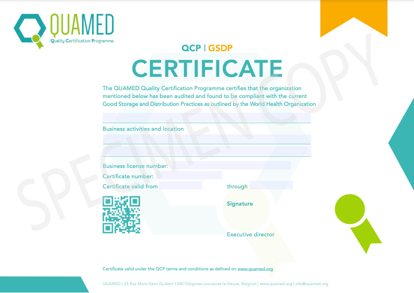 QUAMED has developed the Quality Certification Program (QCP). Through the QCP we are offering wholesalers and manufacturers an opportunity to apply for a QUAMED QCP Certification for GSDP, GMP or MQAS standards.